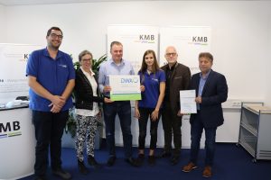 Bereits zum zweiten Mal in Folge erhielt der KMB, Zweckverband Kommunalwirtschaft Mittlere Bergstraße, die Anerkennung als „DWA-Ausbildungskläranlage“. Vera Heckeroth, Geschäftsführerin des Landesverbandes Hessen/Rheinland-Pfalz/Saarland der Deutschen Vereinigung für Wasserwirtschaft, Abwasser und Abfall überreichte die Urkunde an das Team der KMB.